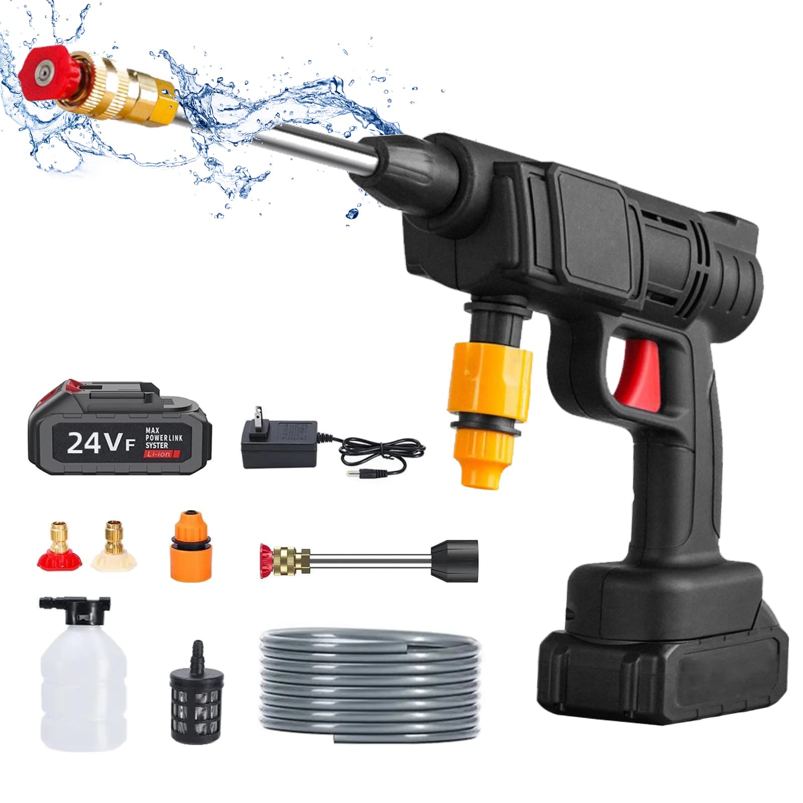 【Fácil de operar】 Pistolade agua de alta presión pequeña y liviana, se puede usar con una mano, batería reemplazable, plug and play. Mango humanizado y cómodo, sujeción a largo plazo sin fatiga. La característica más importante de este producto es que puede deshacerse de la limitación del cable de alimentación y puede transportarse y usarse fácilmente al aire libre. La máquina se puede montar en minutos.